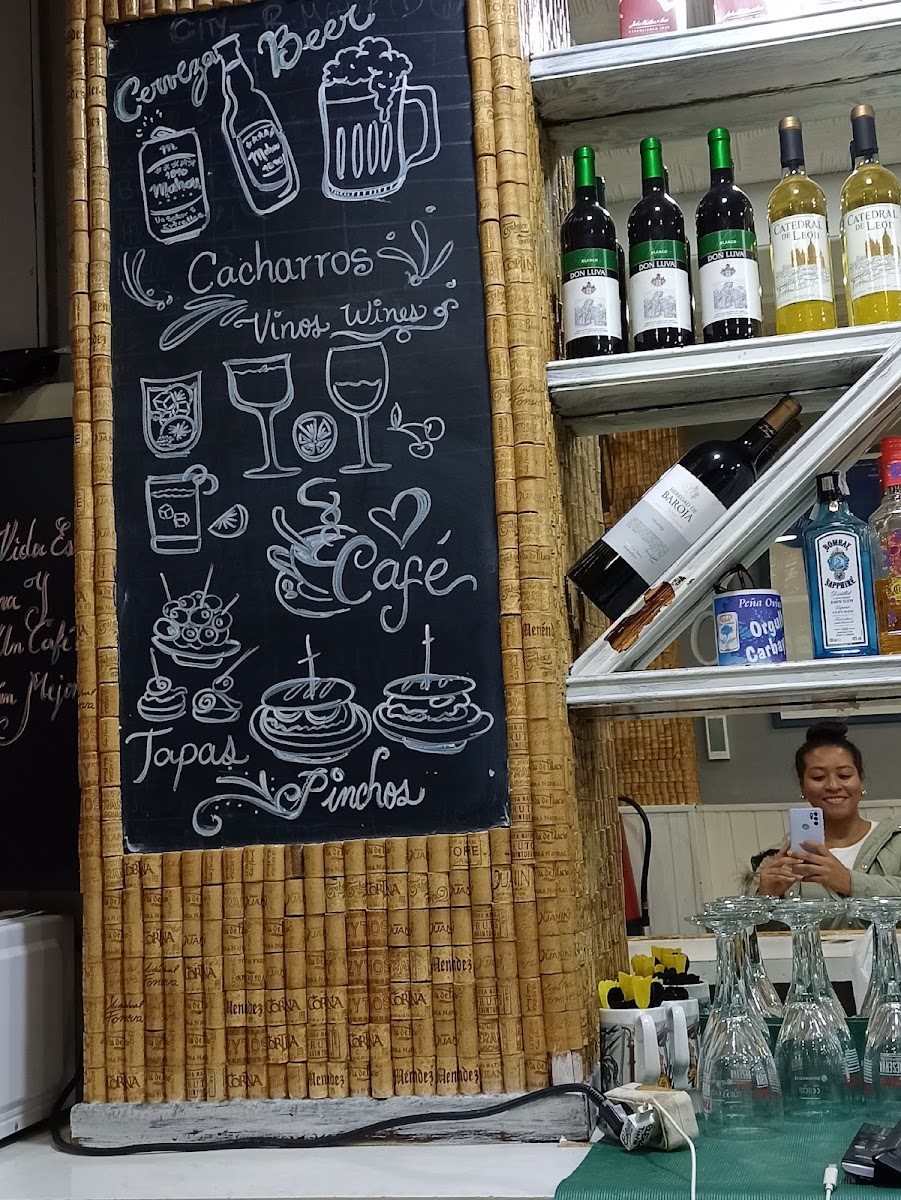 The menu offers a variety of options typical of a cafeteria, bar, and café setting. It includes a selection of coffee and other beverages suitable for coffee breaks or casual refreshment. Light food items such as pinchos are available, providing small bites that can be enjoyed alongside drinks.